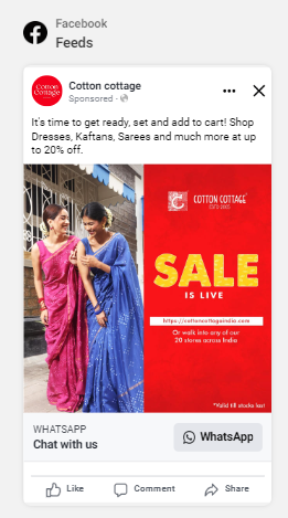 Our digital marketing agency worked with Cotton Cottage, a fashion brand specialising in hand-block printed apparel. We provided performance marketing services, running Google and Instagram ads to boost their revenue and increase online sales. Our team worked closely with the client to create compelling ad campaigns that targeted their ideal audience, resulting in a significant increase in conversions and revenue.
